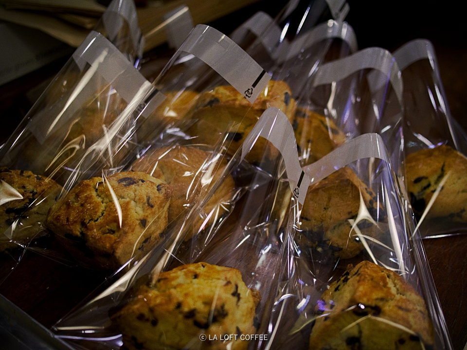 스콘 생산후 충분히 식힌 다음 포장하여 진열합니다. 포장 안 한 상태로 진열하는 게 보기에는 좋지만 스콘의 상태나 위생에는 별로 좋지 못하여 저희는 바로 포장하고 있습니다.