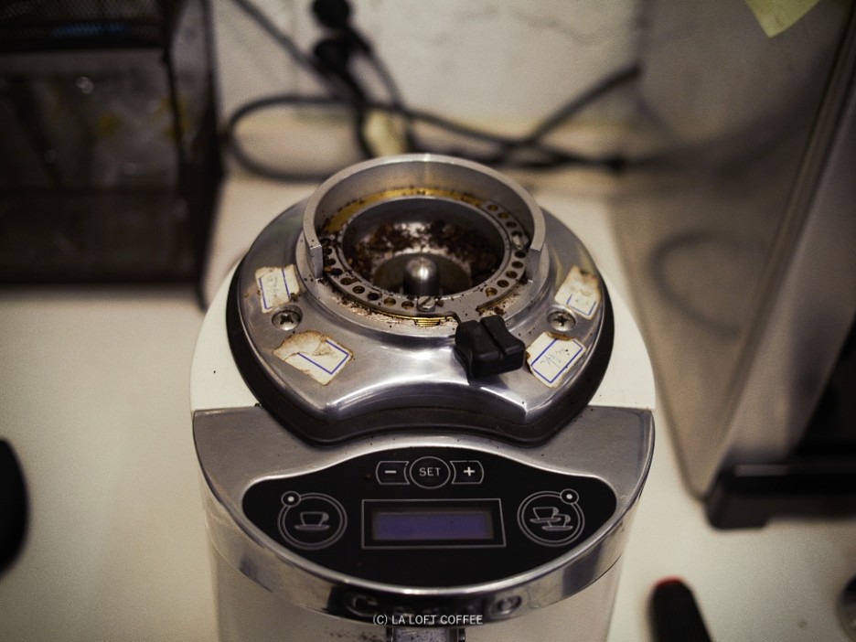 상부 디스크를 풀어주기 시작했습니다. 한두 칸씩 풀어주는 게 아니라 반뼘? 이상으로 돌려줬습니다. 새로 산 그라인더 날의 생김새가 기존의 날과 크게 달랐는데 날과 날 사이의 간격이 좁아져있고 날의 갯수가 많아졌습니다. 이로 인해 초당 분쇄량이 증가하였습니다. 기존 날은 16그람 분쇄시 12초가량이 소요되었다면 새로운 날의 경우 7초 이내로 분쇄가 가능해졌습니다.